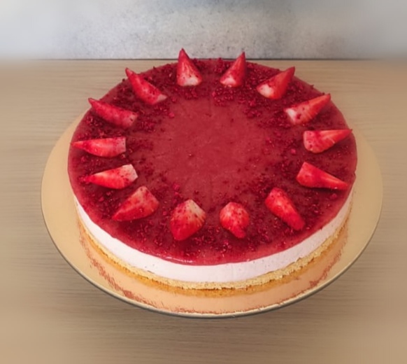 Jemný smetanový cheesecake na máslovém sušenkovém korpusu, doplněný vrstvou jahodového gelu. Dokonale vyvážená chuť - žádná umělá aromata, pouze poctivé suroviny.