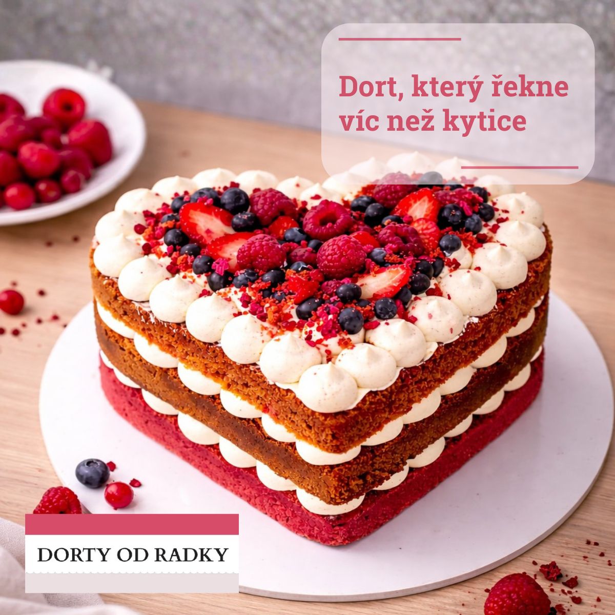 Tento dort je připraven z jemného sametového korpusu red velvet v kombinaci s lahodným smetanovým krémem s pravou vanilkou a je bohatě ozdobený čerstvým ovocem.